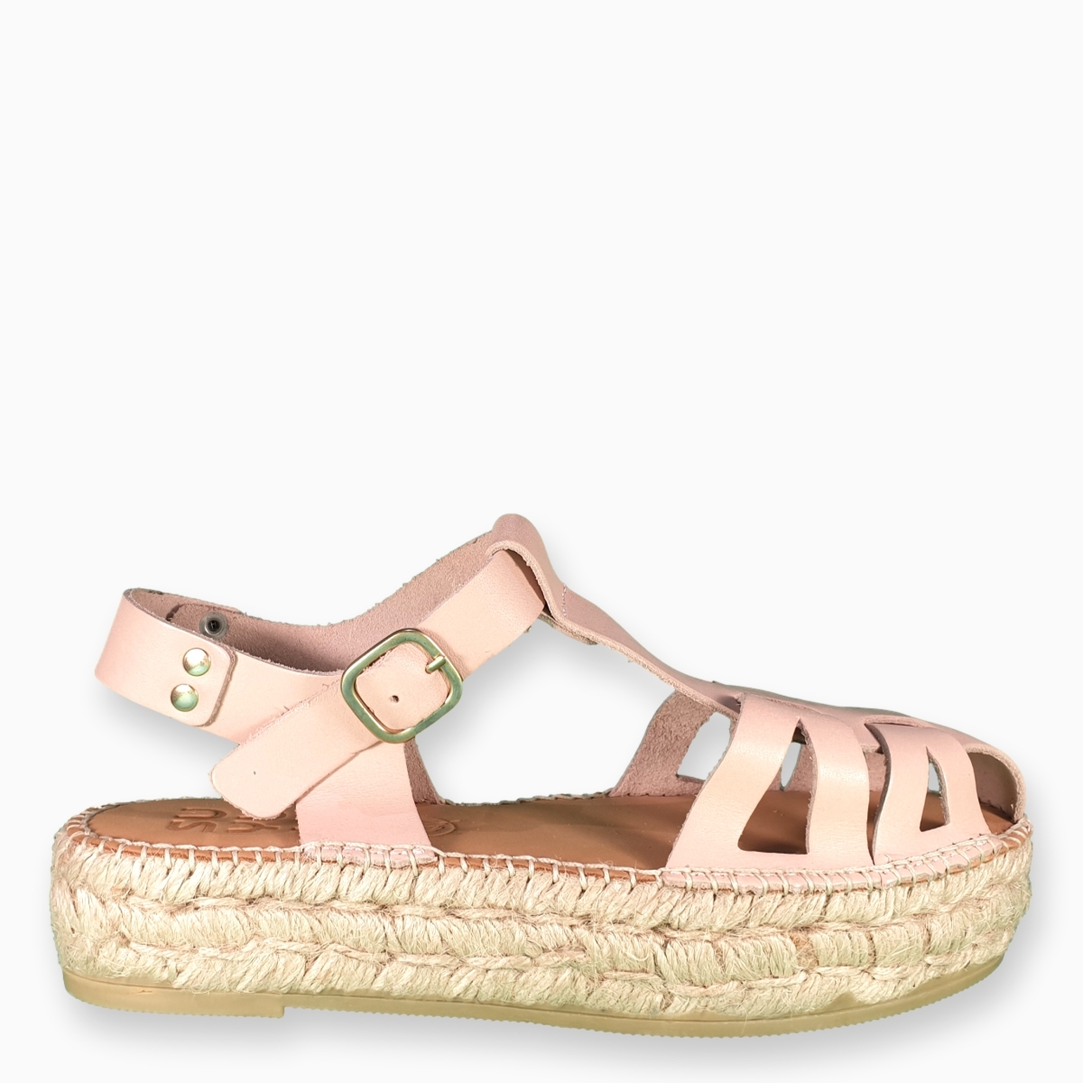 Alpargata de piel realizada a mano con diseño de cangrejera con suela doble de yute natural. Plantilla acolchada y de piel de vacuno para aportar una mayor comodidad. Suela recubierta de caucho para alargar la duración del yute y mejorar la adherencia. Con hebilla dorada al tobillo. Un diseño que va con todo para tu día a día.